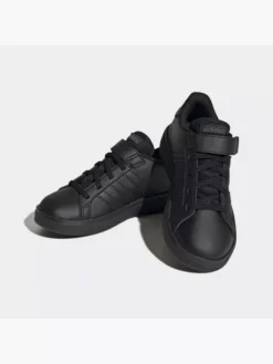 Mit einer Sneaker-Sammlung kann man gar nicht früh genug anfangen, und dieser adidas Grand Court für Kinder ist der ideale Grundstein dafür. Er kommt mit einer robusten und gleichzeitig flexiblen Gummi-Cupsohle, die deinem kleinen Sneakerhead bei jedem Schritt Halt gibt. Dank der elastischen Schnürsenkel und des Klettverschlusses über dem Spann können die Kids diesen klassischen Sneaker ohne Binden ganz einfach selbst an- und ausziehen.Mit einem Recycling-Anteil von mindestens 50 % im Obermaterial ist dieses Produkt nur eine unserer Lösungen im Kampf gegen Plastikmüll.