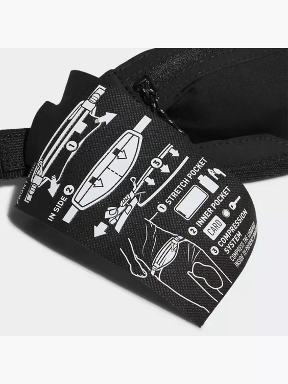 Schlüssel. Smartphone. Energieriegel. Diese adidas Laufgürteltasche bietet Platz für alles, was du auf langen Strecken brauchst und ist dabei auch noch superbequem. Dank des stretchigen Materials und des Kompressionsriemens ist alles schön kompakt, damit nichts wackelt, scheuert und stört. Stell einfach den Hüftgurt ein und du bist startklar.