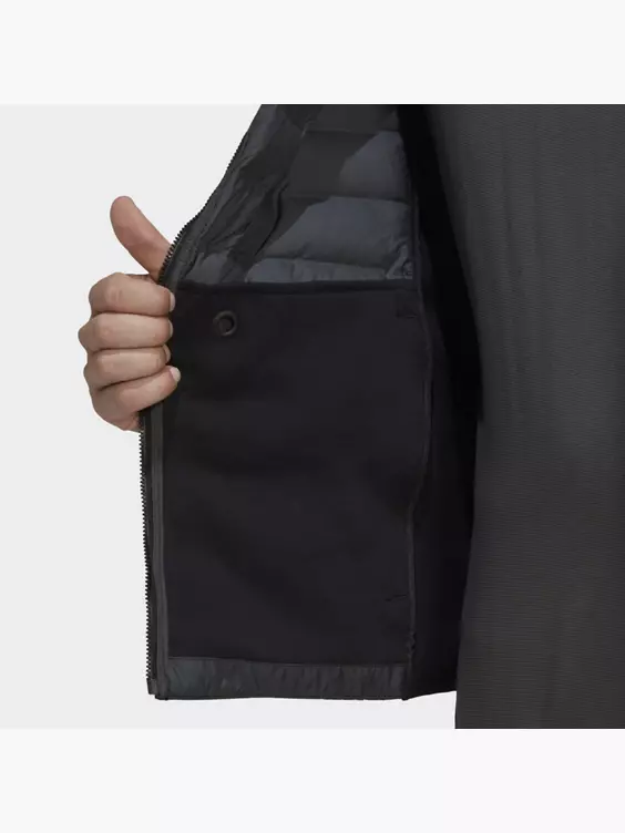 Das Wetter ist oft unberechenbar. Wenn du diese adidas Jacke unterwegs griffbereit hast, bist du perfekt gegen Kälte gerüstet. Im Rumpfbereich wärmt sie dich mit ihrem nahtlosen Daunenkammerndesign und schützt zuverlässig vor Wind und Nässe.